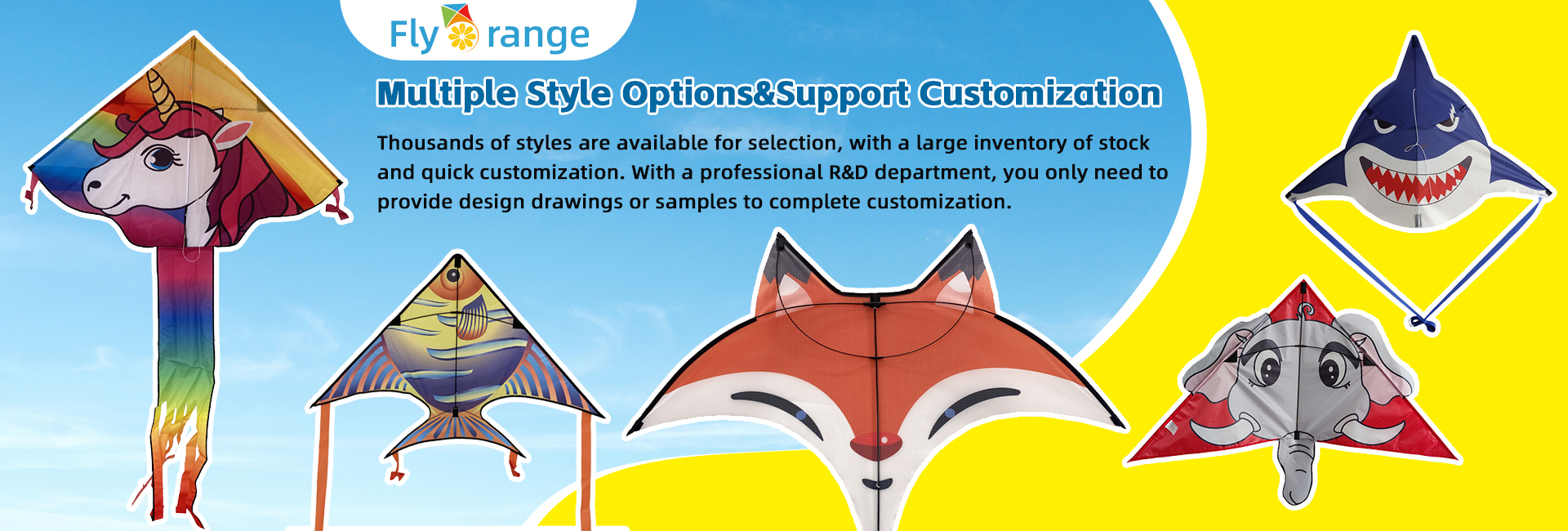 Flyorange Kite had more than 30 years of kiteproduction experience, and we have a professionalR&D team ,the employees are more than 150, andour workshop area over than 6,0o0 m . we candevelop and design various types of large, medium,small, single and dual line stunt kite, with an annualproduction capacity of 1.2 million.