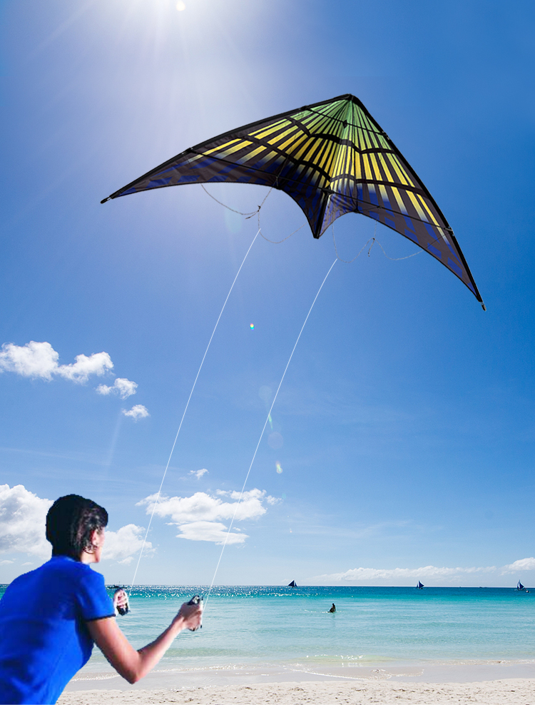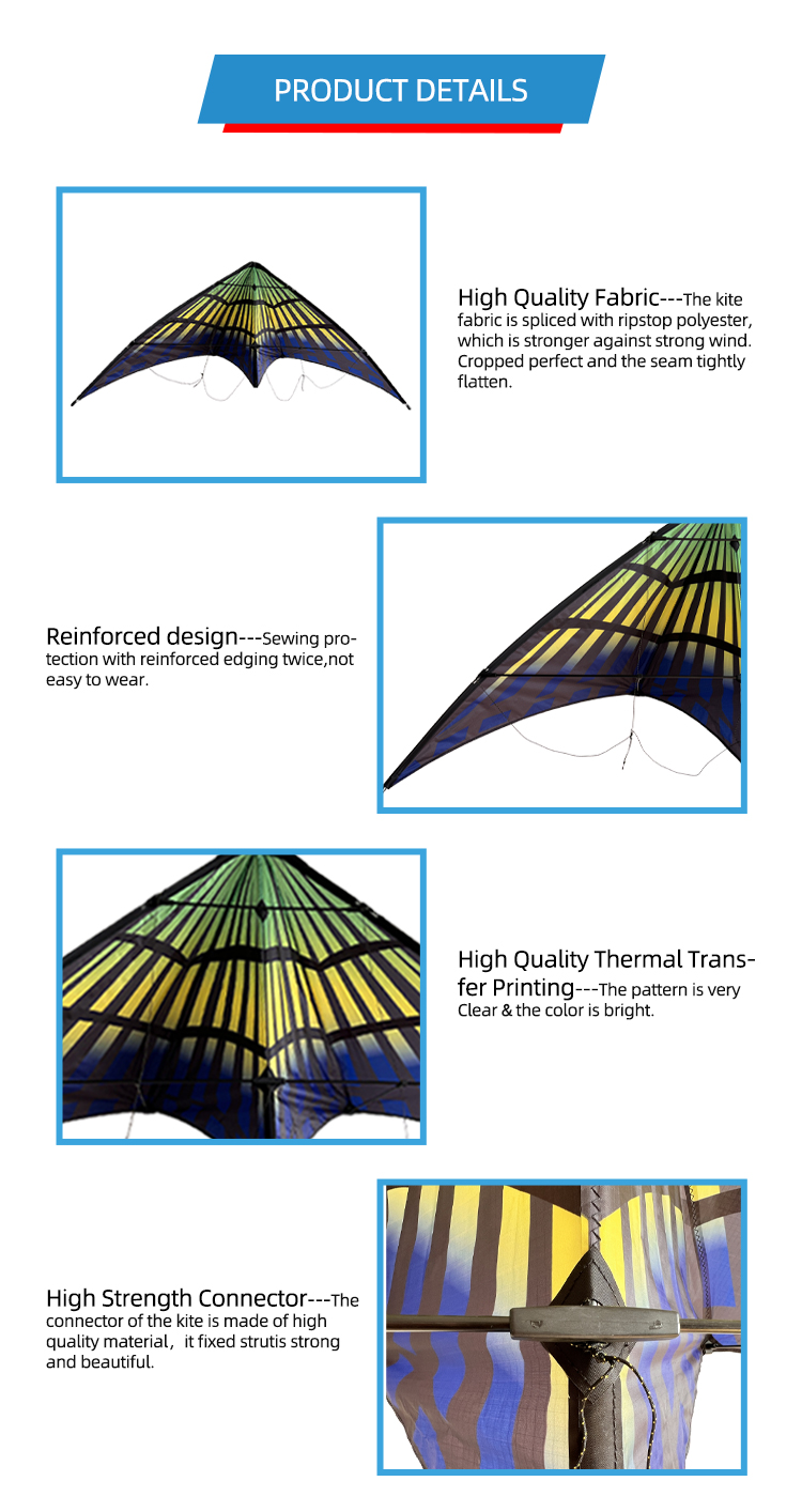 In the painting of blue sky and white clouds, a butterfly is dancing in the air with amazing skills. This butterfly double line stunt kite, with its unique shape and excellent performance, brings you a visual feast. It is made of lightweight and tough materials, with bright colors and exquisite details, as if there is really a butterfly dancing in the air. The dual line control system allows you to easily control every movement of the kite, whether it’s a difficult flip or an elegant hover, you can do whatever you want. Take it to the park, to the square, let this butterfly kite show its unique charm in the air, become your best companion for outdoor activities, and let you show off your skills in the wind.