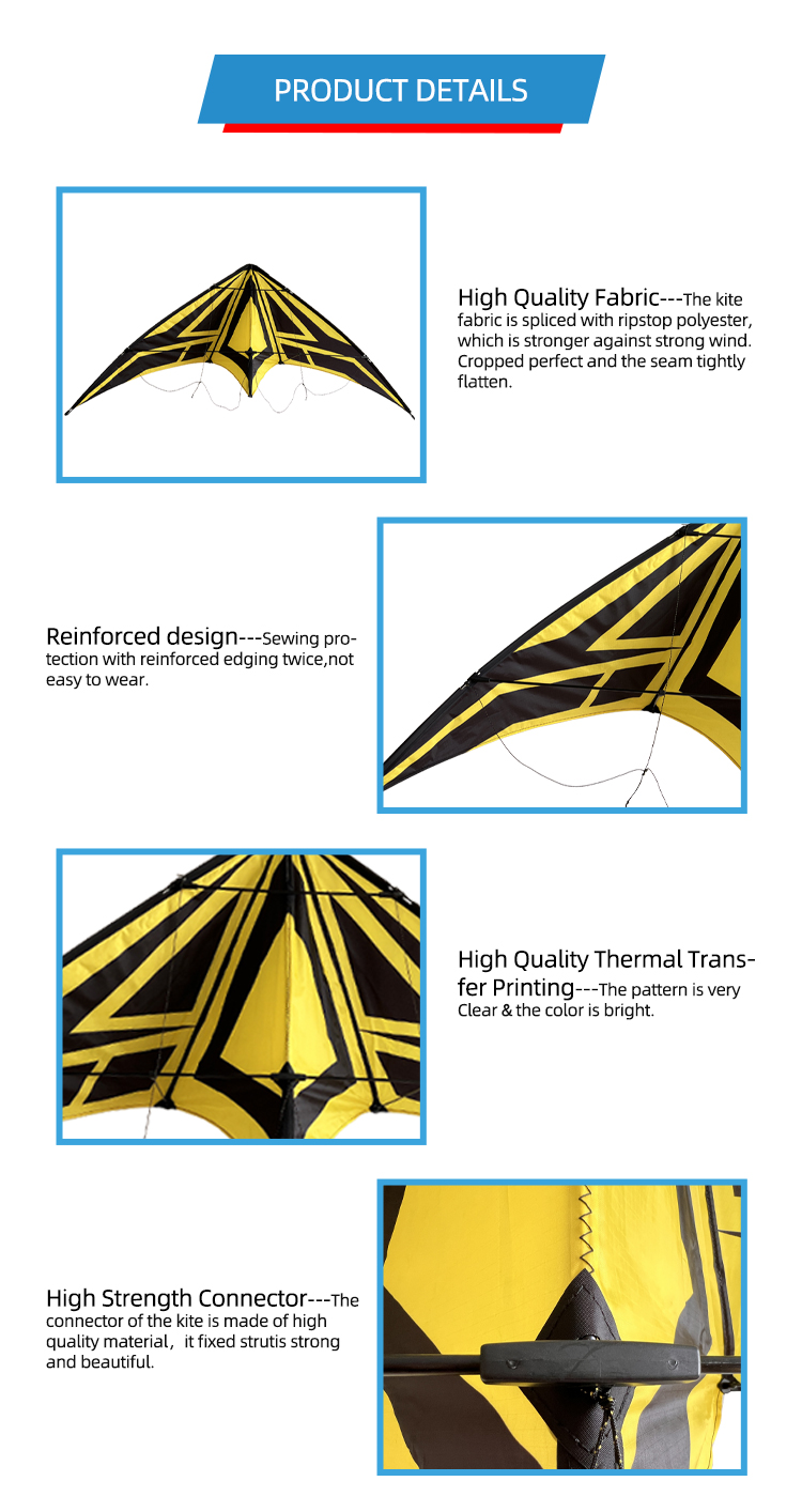When the kite meets the double line, a visual feast begins. This double string kite, with its unique design and exquisite craftsmanship, has become a leader among kites. It uses environmentally friendly and non-toxic materials, is safe and reliable, and has a brightly colored design that attracts the attention of every kite enthusiast. The dual line control system allows you to accurately control every movement of the kite, whether it is a difficult flip or an elegant hover, it can be easily achieved. Take it to the park or square, let the kite showcase its unique charm in the air, become your best companion for outdoor activities, and let you show off your skills in the wind.