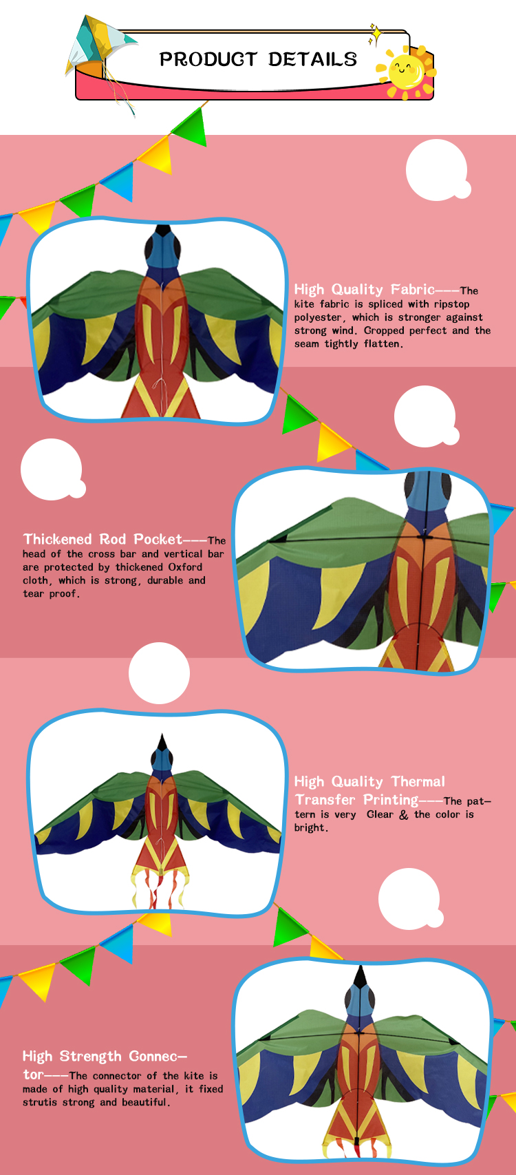 High Quality Fabric—The kite fabric is spliced with ripstop polyester, which is stronger against strong wind. Cropped perfect and the seam tightly flatten.