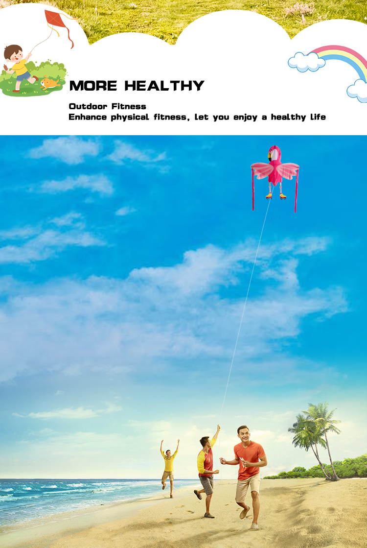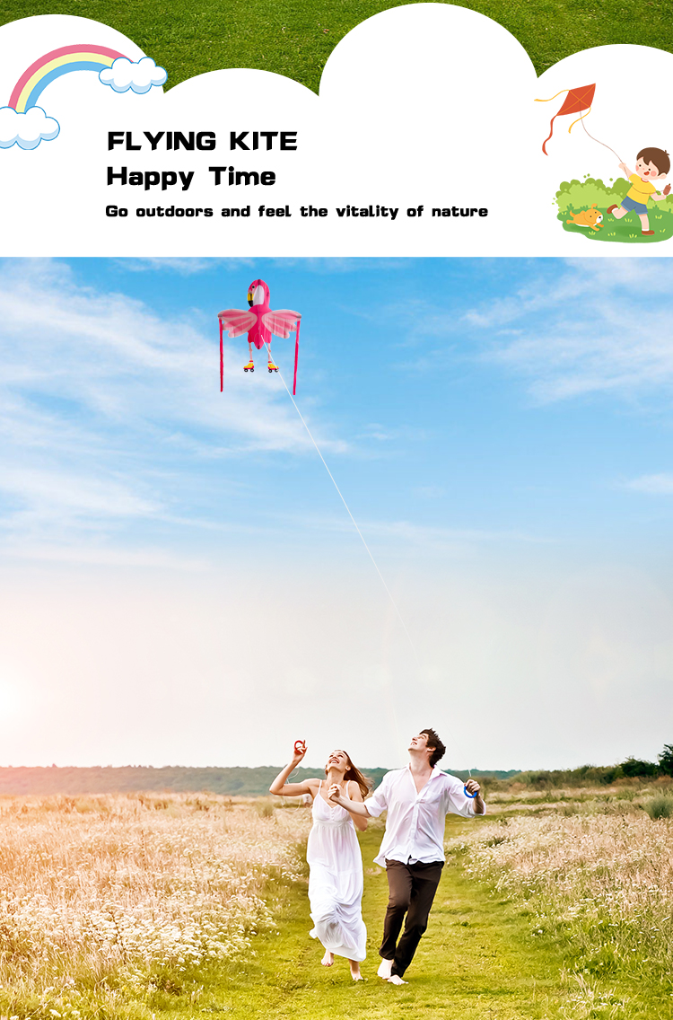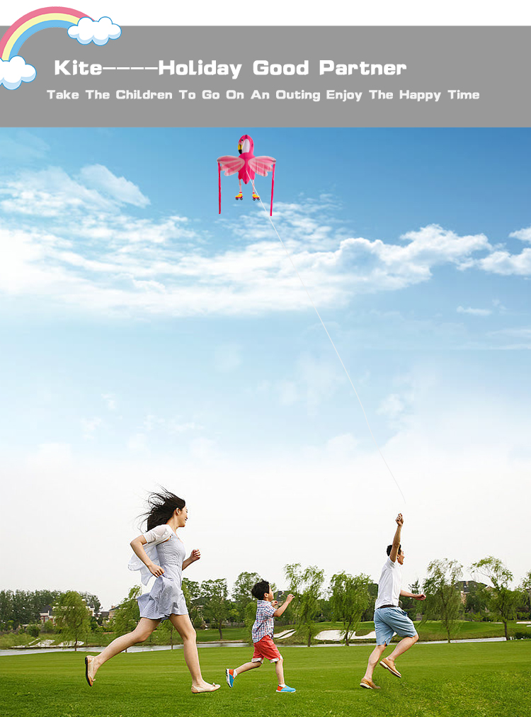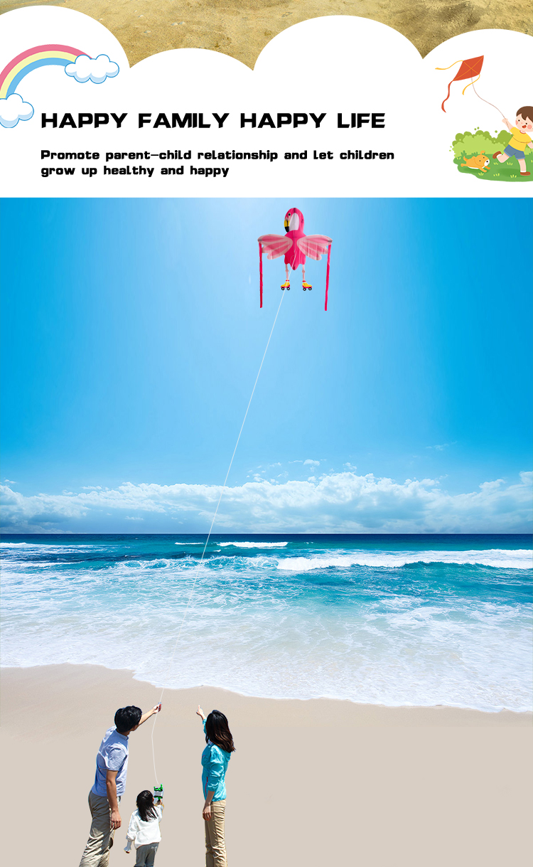 Vibrant design: This kite features a cute cartoon flamingo shape and bold contrasting colors that make it a charming sight in the sky.