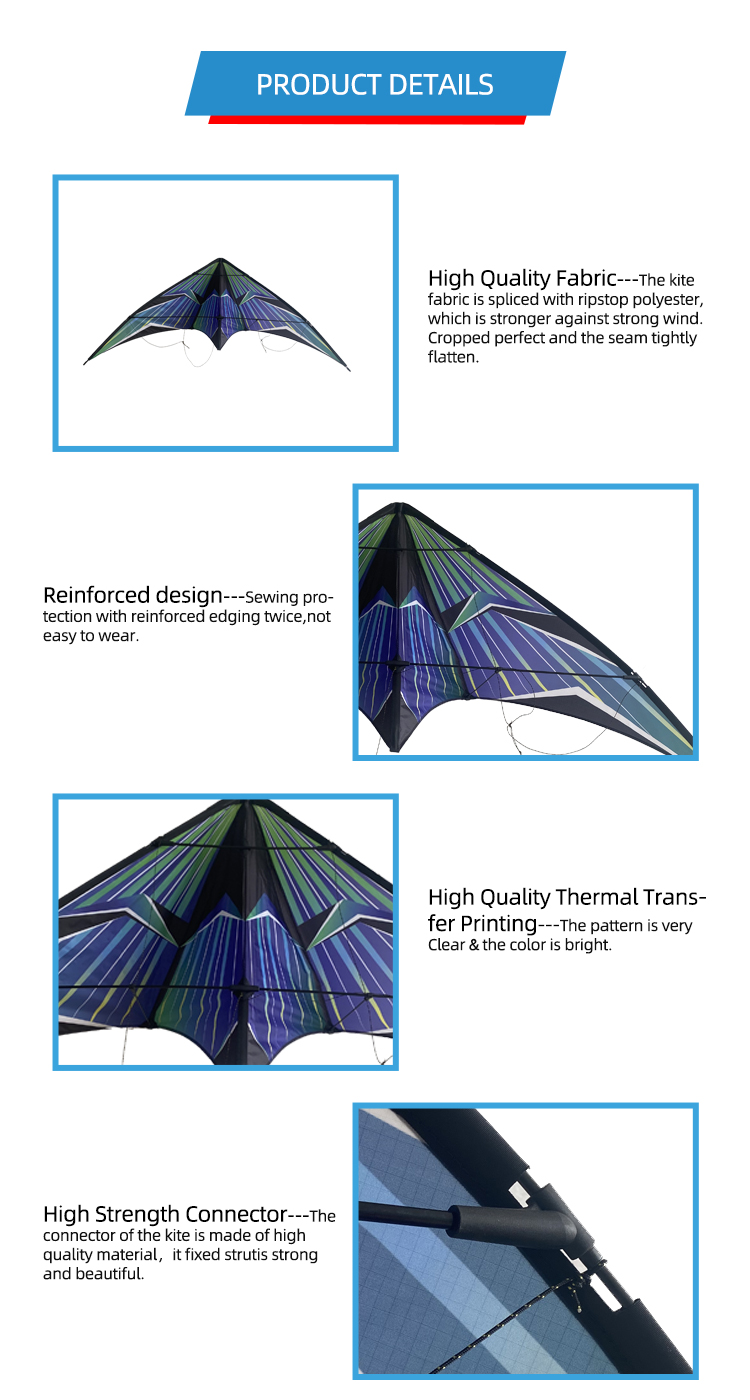 Length: The length of the string is often twice the width of the kite, and the angle needs to be dynamically adjusted according to the wind to maintain lift balance